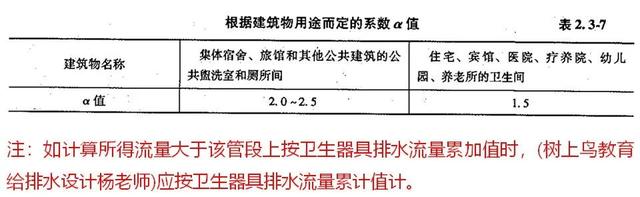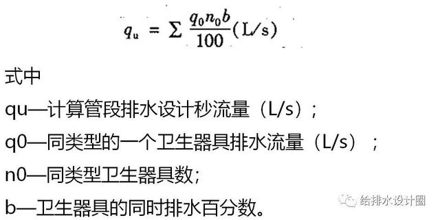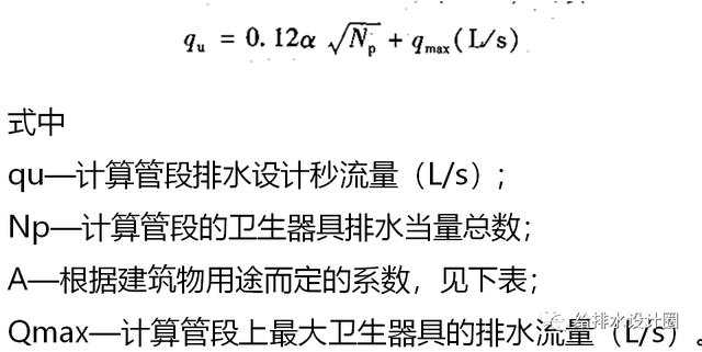(1)住宅、集体宿舍,旅馆、医院、幼托、养老院、办公楼、商场、会展、中、小学教学楼等建筑的生活排水管道的设计秒流量应按下式计算: