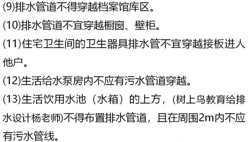 排水管道敷设的原则及不准设置的场所,这次说得够清楚明白了