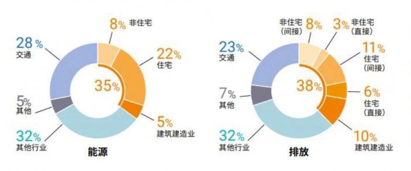 2019年全球建筑建造行业终端能耗和碳排放占比