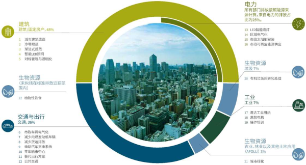 实现零碳城市愿景,以建筑、电力、生物资源、工业、交通与出行等方面作为减碳的重要空间载体。