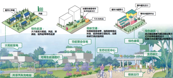 通过发展绿色生态技术,降低社区碳排放,提高社区固碳能力,建设生态零碳社区。