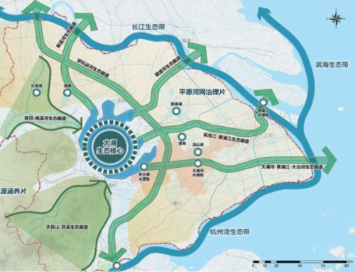 长三角一体化示范区水网生态以及太湖流域共同保护格局图