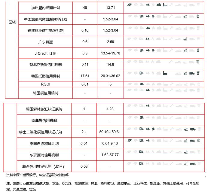 区域、国家和地方碳信用机制由各自辖区内立法机构管辖,通常由区域、国家或地方各级政府进行管理。截至目前主要所有20个区域、国家和地方碳抵消机制,例如中国温室气体自愿减排计划(CCER)、澳大利亚减排基金(Australia Emissions Reduction Fund,ERF)和美国加州配额抵消计划(California Compliance Offset Program)等。