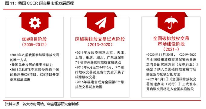 * 第三阶段:全国碳交易市场阶段。从2021年开始建立全国碳交易市场,CCER申请有望重启。
