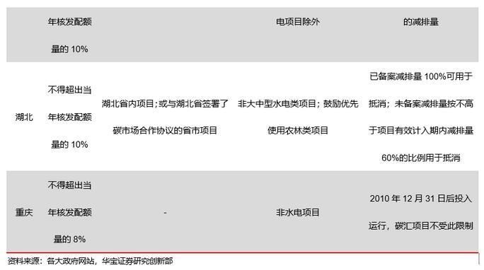各试点实行不同抵消机制,抵消比例5%-10%之间。各试点均以CCER作为碳排放抵消指标,但抵消比例不同。北京、上海试点CCER抵消使用比例不得超过当年核发配额量的5%;天津试点抵消使用比例不超过当年实际排放量的10%;深圳、湖北试点抵消使用比例不超过配额量的10%;广东的CCER抵消使用比例不超过企业上年度实际排放量的10%;重庆抵消使用比例不超过审定排放量的8%。