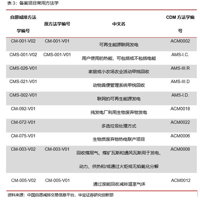 发改委已发布200个CCER相关方法学。自愿减排项目需满足国家规定的项目类别,同时符合发改委经过备案的方法学。2013-2016年,发改委已自愿减排交易信息平台上在先后发布12批温室气体自愿减排方法学备案清单,具体来看,由联合国清洁发展机制(CDM)方法学转化174个,新开发26个;常规方法学107个,小型项目方法学86个,农林项目方法学5个。