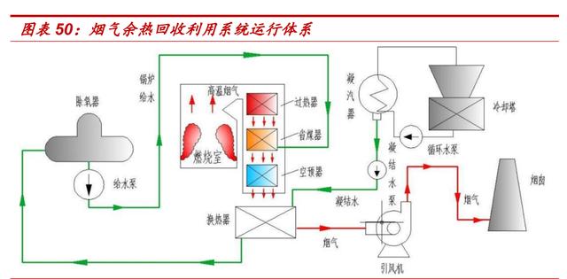 余热回收利用减碳效果显著,未来应用规模有望进一步扩大。以青岛顺 安热电燃煤锅炉烟气余热回收项目为例,据腾讯网公开信息,该项目建 设有 1 套 15MW 烟气余热深度回收系统和 1 套 2×15MW 烟气余热深度 回收系统,采用基于喷淋换热的烟气余热回收与减排一体化技术,将空 塔喷淋、吸收式换热等技术结合实现降烟温至 25℃,回收余热进入高温 水一次网用于冬季居民供暖。据测算,该项目年可回收余热量 34.35 万 GJ,年回收余热量可增加居民供热面积 90 万平方米,同时项目运行后 年节约原煤 1.49 万吨,年可减排二氧化碳 3.50 万吨,显著降低二氧化 碳排放。未来随着碳中和政策推进,工业企业对提升能源效率的重视程 度将不断提升,余热回收利用模式有望在钢铁、建材、石化等诸多行业 中应用,行业规模快速扩张可期。
