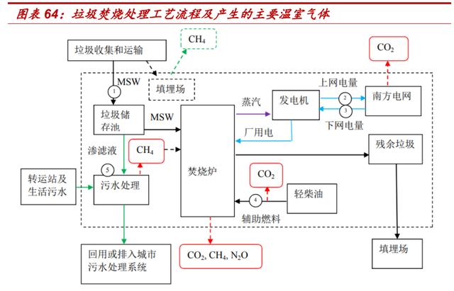 固废处理利用助力碳减排主要是依靠垃圾焚烧处理实现,垃圾焚烧处理 降低二氧化碳排放的两条路径:一是垃圾焚烧发电可对燃煤发电形成一 定替代,在减去垃圾焚烧发电过程中产生的二氧化碳后仍具有较为显著 减排效应,此外应用 CCS(碳捕集和存储)技术可使得生活垃圾焚烧发 电成为负碳技术;二是减少垃圾填埋过程中产生的甲烷、二氧化碳等温室气体,助力温控目标实现。