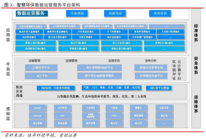 我国在“智慧环保”领域龙头企业主要以数据运营服务为核心,建立整套从数据采集、数据分析到数据应用的能力,为客户提供从发现问题、分析问题到解决问题的全方位服务。
