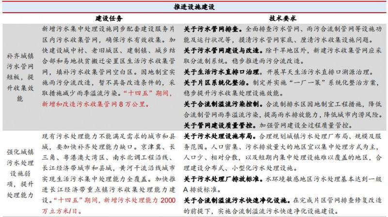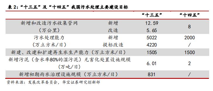 1)污水收集管网:“十四五”期间新增和改造污水收集管网 8 万公里,相较于《“十三五”规划》降低 10.24 万公里(包含合流制管网改造 2.88 万公里);