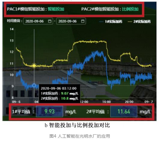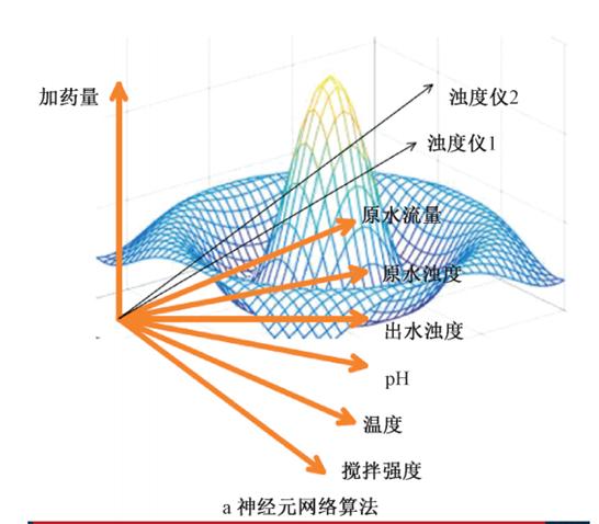 水厂传统碱铝投加控制影响因素多、滞后性明显,在光明水厂,采用神经元网络算法建立数学模型,精准控制碱铝投加量(见图4)。通过在水厂引入工艺智能算法实现了生产精细化控制,使之初步具备自学习能力,水处理单元适应性变得更强,使生产更加安全可靠,并显著降低水厂生产药耗。
