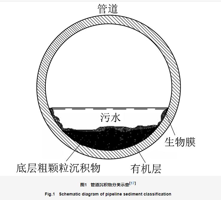 在城市排水系统中,污水所含固体颗粒占比高,管道流速低且不均匀,在排水管道内容易造成管底沉积物淤积现象。据报道,欧洲排水管道中的沉积物沉积速率可达30~50 g/(m·d)[4];法国直径1.25 m以上的排水管中,沉积物淤积厚度超过30 cm[5]。我国大部分城市的老城区为合流制系统,大管径的合流制管道在远距离输送过程中沉积率高达40%[6]。北京市二环以内老城区90%以上的合流制管道都存在不同程度的淤积[7];北京城区约60%的排水管道中存在沉积物,15%的管道沉积物淤积严重,沉积物体积占排水管道体积的15%以上[8]。广州市有50%以上的排水管道存在淤积现象,管道过流能力受到不同程度影响[9]。