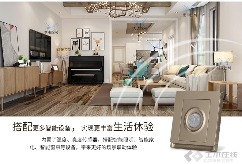 室内的过道和卫生间位置可以安装传感器.html'>传感器来控制灯光,在需要安装传感器的区域墙体上,预留出零火线即可。安装传感器时接入零火线,并根据说明书上执行对码操作,再根据需求完成设置操作。同样预留安装标准86底盒的深度。