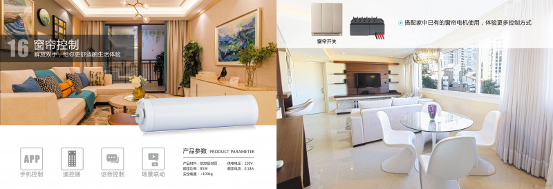 需要在窗帘位置上预留安装窗帘盒的宽度,单层轨道需要至少12cm,双层轨道至少20cm;附近的墙面上预留220V电源或是普通插座,供窗帘电机.html'>电机工作使用。智能窗户控制,同理也需要在推窗器电机旁预留一个220V电源或是普通插座,智能窗户控制支持平移和向外开窗两种控制方式,所以也需要预留安装推窗器或开窗器的宽度。