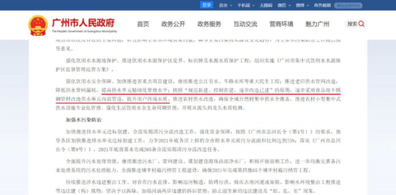 从《工作要点》中的字面表述 “按照 ‘规范新建、控制在建、逐步改造已建’ 的原则,逐步采用食品级不锈钢管材......” 可以看出广州的步伐调子很稳固,但是相关可落地的细则规范以及配套措施出台,可能还尚需时日。