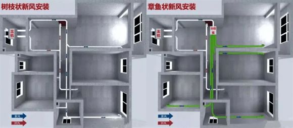 一套好的新风设备搭配优质的新风管道,可以保证新风系统的良好运行,并达到最好的送风效果。目前国内两种主流的安装方式为PVC管道安装和PE管道安装。除此之外还有EPP管和铁管的选择。
