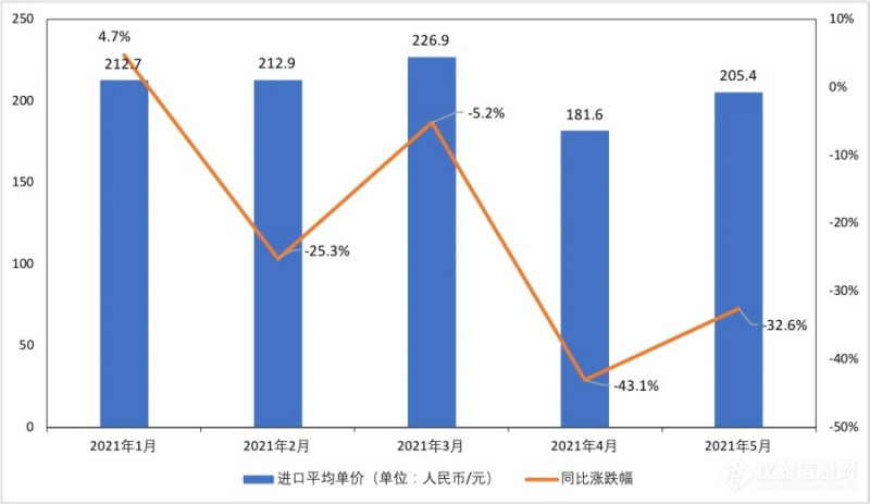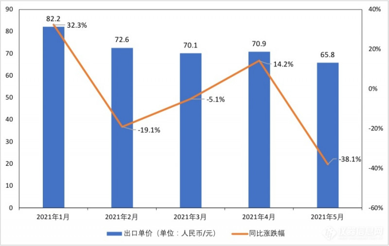 为了解PPI上涨对国内仪器企业生产经营的影响,本文以泛环境监测行业为例,通过2021年1-5月气体或烟雾分析仪(Hs编码:90271000)的海关进出口数据及相关企业2021年Q1财报数据,分析相关仪器进出口价格变化、相关生产企业经营成本及利润的变化。