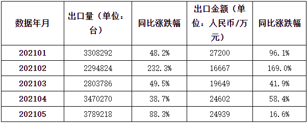 表2:2021年1-5月气体或烟雾分析仪出口量及出口金额统计