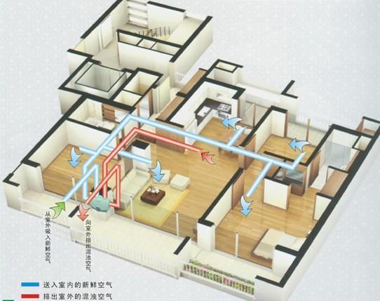 双向流新风系统是通过两根管道,把经过主机过滤后的新风送到室内各个空间里,然后主机会把室内污浊空气通过另一根管道抽出刀室外,室内的新风和排风都是通过管道、风口进行定向运行,气流会很有次序的进行送入和排出,在规定的时间内达到空气置换的效果。