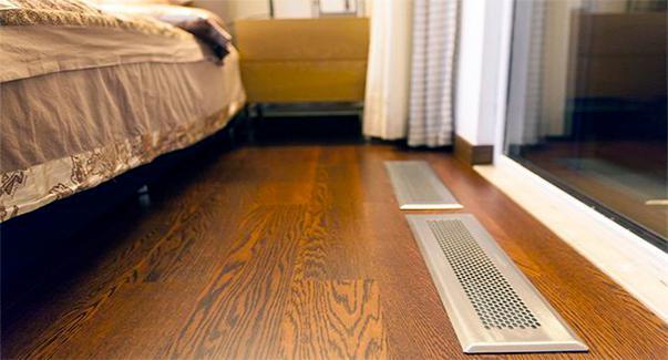 这样的方式,在空气置换上是最彻底的,新鲜的空气进入就被人呼吸了,静音度非常高,风口就算布置在床头柜的位置,人也听不见噪音。