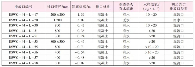 表1某暗涵排口调查部分信息