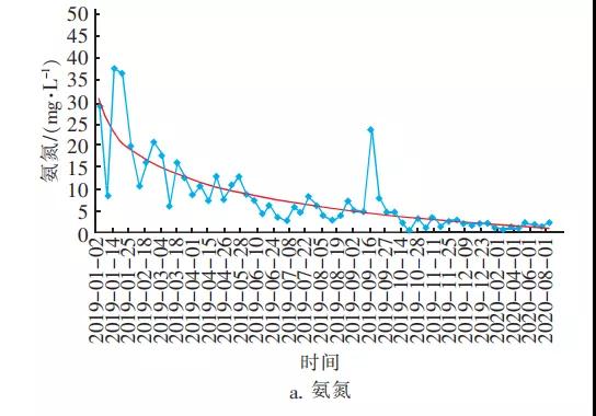 针对该段暗涵,本次对其45个有水流出的问题排口进行了改造,将暗涵内的22个污水直排口进行了封堵就近接入市政污水管;对雨污混流的23个排水口通过污染源溯源在上游进行整治,改造后暗涵总雨水排口数为114个。根据长期暗涵末端取样,结果如图10所示。