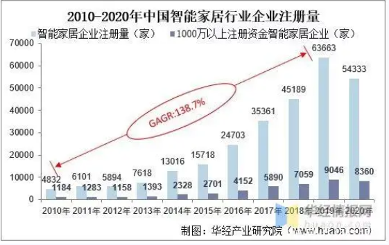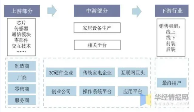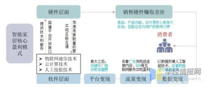 整体来看,智能家居产业链较长,但盈利核心主要将聚焦于两大路径:(1)硬件盈利:传统产品智能化将助力厂商获得溢价,同时在智能平台的开放性与兼容性演变的过程中,产品成套购买或帮助用户获得更好的使用体验;另外新兴单品如智能音箱、智能门锁、扫地机器人、后装控制系统正快速发展;(2)服务盈利:随着智能家居终端数量的增加,平台所积累的流量、数据以及品牌也有望在广告、内容、营销、加盟等方面提供变现可能。 智能家居盈利模式 资料来源:公开资料整理 上游技术层面,包括硬件支持与软件技术。硬件支持可进一步划分为传感器.html'>传感器、无线模块、芯片、材料等;系统及软件支持可以划分为通信技术、大数据、云计算、操作系统、人工智能等技术。中游包括智能家居设备生产厂商与平台。智能家居主要玩家包括互联网巨头、传统家电企业和创业公司,主要的产品包括娱乐系统、安防系统、开关控制系统、厨卫家电系统、照明系统等。而平台则提供了将各智能家居产品连接在一起的中介形态,如操作系统平台、应用平台等。下游涵盖了各个销售渠道以及最终用户。智能家居的销售渠道多种多样,从是否联网的角度可划分为线上线下,从前装与后装的角度可划分为房地产相关渠道与商超零售渠道。 智能家居产业链基本状况 资料来源,公开资料整理 我国智能家居行业受益于5G技术和NB-IoT等新型技术的落地提速,行业快速发展,随着行业逐步成熟,我国智能家居行业由高速增长模式逐步转化为高质量增长模式。根据数据显示,2017-2020年我国智能家居行业增速逐年下降,其中2020年中国市场规模为1705亿元,同比2019年增长11.4%,增速较2019年较大幅度下降。 资料来源:公开资料整理 就智能家居市场结构而言,我国智能家居市场主要以家庭安防、智能照明、智能影音和智能家电等品类为主,分别占总体智能家居市场比重为21%、16%、14和12%。 数据来源:CSHIA Research,华经产业研究院整理 目前随着智能传感器的普及,和5G/WIFI 6等通讯技术的大规模应用,万物联网的智能家居生态圈已经成为现实,人们的生活已经离最终的智能感知、人机交互不远了。随着5G技术的发展,智能家居设备的出货量也呈现出井喷式的增长,越来越多的初创企业加入了这条赛道;传统的家居家电企业也开始尝试转型。随着我国智能家居行业快速发展,相关企业数量逐年上升,根据公开数据显示,我国智能家居相关企业自2010年起快速增长,2010-2019年的年复合增长率约为138.7%,随后2020年受疫情影响,行业发展有所放缓,但随着经济的逐渐回暖,2021年我国的智能家居制造行业而有投资加快的趋势。 资料来源:公开资料整理 在中国智能家居市场上CR5市场份额约50%,小米占有市场先机,目前拥有最完整的智能家居生态链资源,在2019年11月小米公布的《小米智能社会进步报告》中显示,小米已经成功接入约1.96亿台IoT智能设备,且仍在以非常高的增长速度继续发展。此前雷军已经公开宣称,小米已经成为全球最大的智能硬件IoT平台。在中国智能家居市场上,市场占有率紧随小米其后的是正在向智能化进军,寻找新的增长点的传统家电企业海尔和美的,以及试图从线上逐渐步入人们线下生活的互联网巨头阿里和百度。根据IDC数据显示,按销量计算的的智能家居市场占有率最高的是小米,占比16%。 数据来源:IDC,华经产业研究院整理 智能家居设备行业的投融资总体上呈现出下跌趋势。2016、2017年为智能家居设备行业的巅峰之年,投融资事件和投融资金额分别到达顶点。2016年针对智能家居设备行业的投融资事件高达131起,而2017年虽然投融资事件数量有所减少,但总投融资金额却到达了近十年的高点,达到了220.32亿人民币。2017年之后,我国的资本市场遭遇寒冬,投融资事件与金额纷纷减少,2018年下滑至110件和134.28亿人民币,到了2020年仅为40件和51.37亿元。 资料来源:公开资料整理 智能家居行业发展方向首先连接智能家居单品,随后走向不同单品之间的联动,最后向智能家居系统平台发展,进行统一的运营。当前,爆款产品、设备联动、语音交互三架引擎推动智能家居从单品智能化向智能联动化演进。而目前就各类家居产品来看,大部分产品主要是为青年人服务,如指纹锁、智能影像设备等,根据数据显示,25-34岁为主要消费人群,2020年占比总和超过51%。 数据来源:CSHIA Research,华经产业研究院整理 相关报告:华经产业研究院发布的《2021-2026年中国智能家居行业发展监测及投资战略规划研究报告》; 目前绝大部分消费者对智能家居的认可率仍有待提升,家庭空间智能化可接受预算程度也处于较低的水平,根据数据显示,2020年中国消费者超6成用户仅接受3万以下的智能化预算,其中占比最高的一万元以下的,占比全部用户的37%,随着行业的进一步发展,用户认可度的逐步提高,预计未来整体可接受预算比将有所提高。 数据来源:CSHIA Research,华经产业研究院整理 我国电商行业发展,在一定程度上拓宽了智能家居行业的销售渠道。就购买/获得渠道而言,目前绝大多数消费者了解和购买都是通过线上电商进行,占比超7成,线下专卖店等和众筹平台分别位列第二第三,分别占比12%和8%。随着5G技术和线上电商平台和进一步发展,未来电商渠道销售份额有望继续提高。 数据来源:CSHIA Research,华经产业研究院整理 我国智能家居渗透率低、增