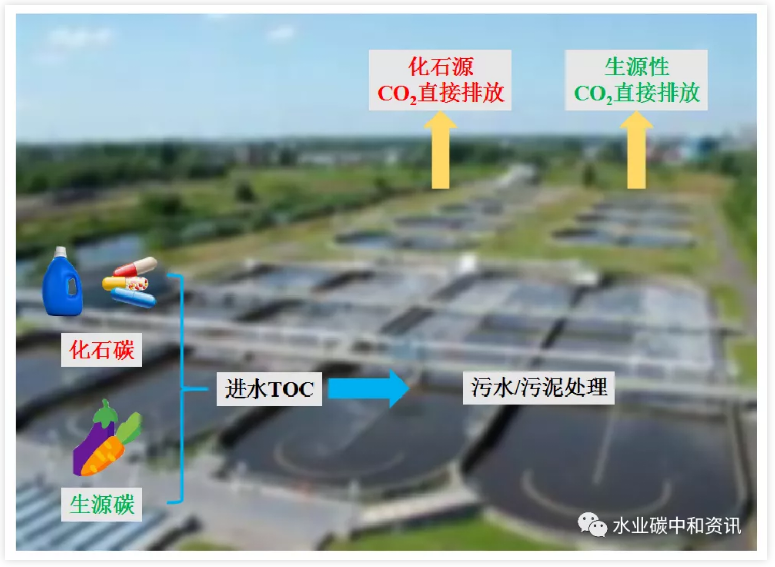 污水处理系统碳排放分直接和间接排放两种,直接排放如上所述通常不计生源性有机物(生源碳)在处理过程中产生的CO2(如,好氧氧化或厌氧氧化产生的CO2),而是指污泥厌氧消化或在污水处理厌氧区产生的CH4以及硝化、反硝化过程产生的NxO。
