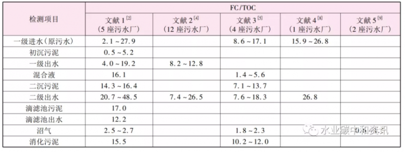 早先IPCC发布的“指南”中称污水中化石碳有机物含量很少,可以忽略不计。但是,有研究者通过放射性碳测定方法测得实际污水中化石碳含量不菲,占污水处理厂总碳排放量的比例不容小觑。