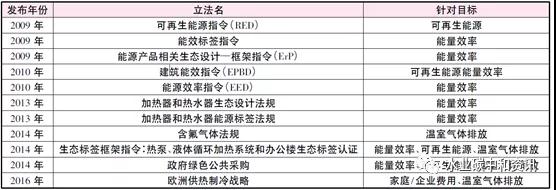 图为影响欧洲热泵技术发展的法律文件