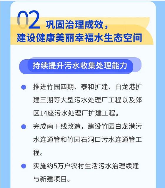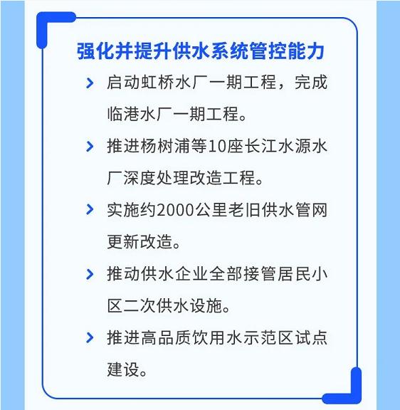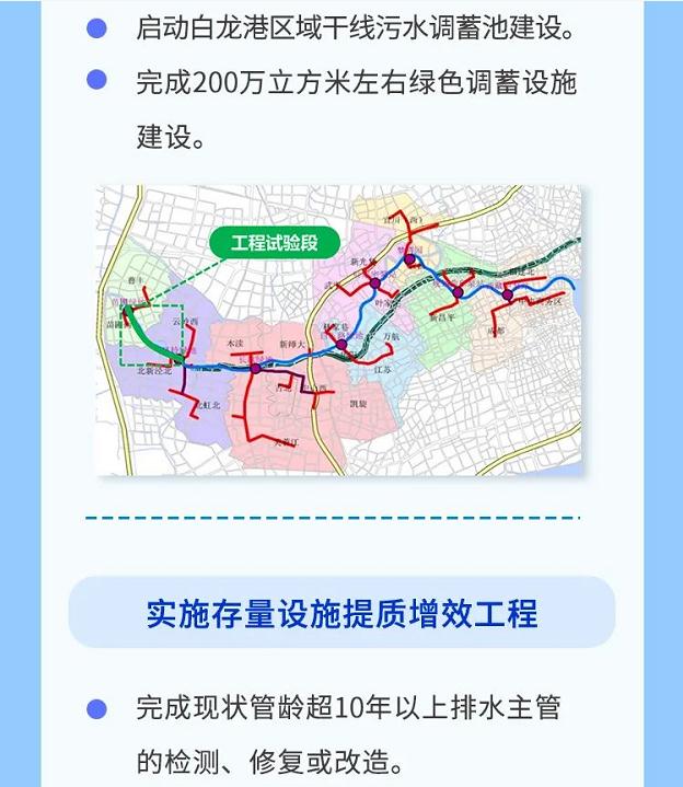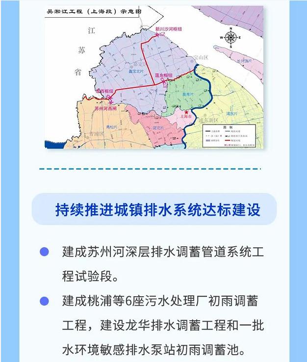 推进污水处理厂新建和扩建,实施竹园污水处理厂四期(含50万立方米调蓄池)、泰和污水处理厂扩建、白龙港污水处理厂扩建三期工程建设,基本解决中心城区旱天溢流问题,雨天溢流得到有效控制;推进郊区14座污水处理厂扩建工程,基本解决郊区污水处理能力缺口问题,全市新增污水处理规模280万立方米/日左右。
