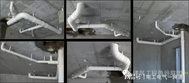 安装吊卡:清理顶板上拆模后吊卡预埋底座孔,按照标准样板不同吊杆长度统一安装吊架。安装吊架时一并清理管道预埋件。排水管安装有坡度要求,不同位置的吊卡吊杆长度不同,必须进行编号对应安装。
