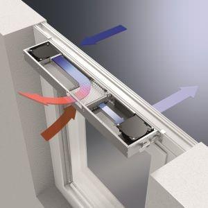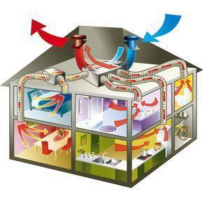 双向流新风系统(即机械式的强制排风,强制送风系统),原理是:每个空间都有独立的进风口和排风口,可以使之形成空气循环链。
