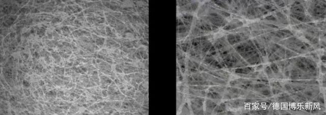 而HEPA过滤技术(High Efficiency Particulate air Filter)则是运用高分子材料形成下面这张图上一个个类似“蜘蛛网”的结构,不让粉尘颗粒通过。