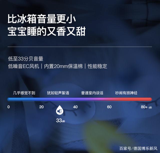 在噪音方面,博乐新风采用低噪音EC风机,加上内置20mm的保温棉,具有良好的密封性,达到消音降噪的极佳效果,比冰箱运行产生的噪音更小。