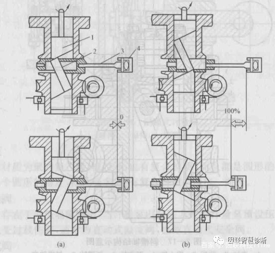 c)行程调节机构:其作用是调节计量泵的行程,是计量泵最核心的机构。行程调节机构的类型有N型曲轴调节机构、L型曲轴调节机构、弓形凸轮调节机构、弹簧凸轮调节机构、改变蜗轮倾斜角调节机构、改变连杆支点调节机构、滑轴斜槽调节机构等。目前应用比较多的是N型曲轴调节机构(中、大型机座用)、弓形凸轮调节机构(微、小型机座用)和比较新型的滑轴斜槽调节机构