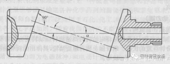 电动机经蜗杆蜗轮减速带动下套筒及N型曲轴转动,偏心套抱在N型曲轴的斜杆上,随轴一起转动,从而带动连杆运动。偏心套的偏心距可以调节。用手转动上调节螺杆,即可使N型曲轴在上下套内移动,从而改变偏心套的偏心距。图2是N型曲轴调节机构调节原理图。图中(a)表示N型曲轴在下部,此时N型曲轴的偏心度和偏心套的偏心度互相抵消,总的偏心度为零,故行程长度为零。当在图(b)所示位置时,N型曲轴与偏心套两者偏心度相加,偏心半径为行程长的一半,此时泵全行程工作。由于行程可在0~100%范围内变化,因而流量也可在0~100%范围内调节。N型轴结构如图3所示,结构上的主要特点是连杆轴颈是倾斜的,中心线与主轴颈的中心线的夹角为α。