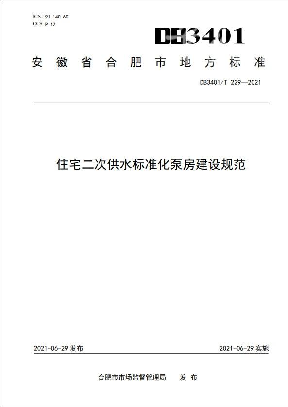 新安晚报 安徽网 大皖新闻讯 记者7月19日从合肥市城乡建设局获悉,近日,合肥市《住宅二次供水标准化泵房建设规范》以地方标准形式,正式发布实施。这是合肥市政府继去年10月1日发布新版《合肥市二次供水管理办法》后,就规范二次供水泵房建设,编制发布的另一项重要地方标准,标志着合肥市住宅二次供水泵房迈进标准化建设新阶段。