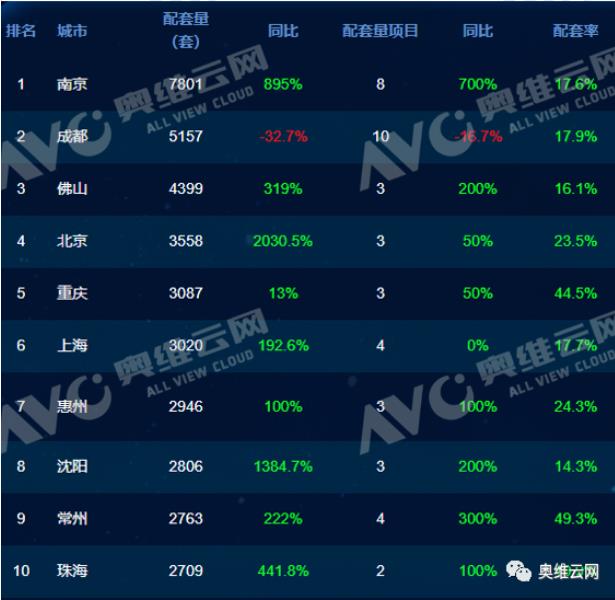 城市分析:南京、成都引领市场,常州、重庆配套率已超过40%