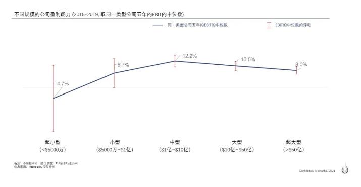 另外,也可能是因为平均利润率较低但五年EBIT相对稳定的设计院(国际为主)一般都属于大型或者特大型公司规模区间。