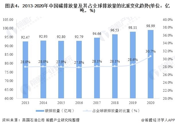 21世纪以来,全球碳排放量增长迅速,2000-2019年,全球二氧化碳排放量增加了40%。据英国石油公司(BP)发布的《世界能源统计年鉴(第70版)》统计数据显示,2013年以来,全球碳排放量保持持续增长,2019年,全球碳排放量达343.6亿吨,创历史新高。
