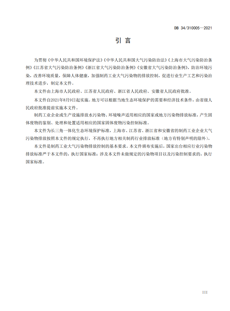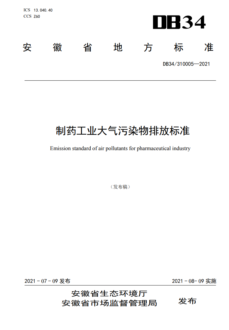 为贯彻《中华人民共和国环境保护法》《中华人民共和国大气污染防治法》《上海市大气污染防治条例》《江苏省大气污染防治条例》《浙江省大气污染防治条例》《安徽省大气污染防治条例》,防治环境污染,改善环境质量,保障人体健康,加强制药工业大气污染物的排放控制,促进行业生产工艺和污染治理技术进步,安徽省生态环境厅等部门制定了《安徽省制药工业大气污染物排放标准》,详情如下。