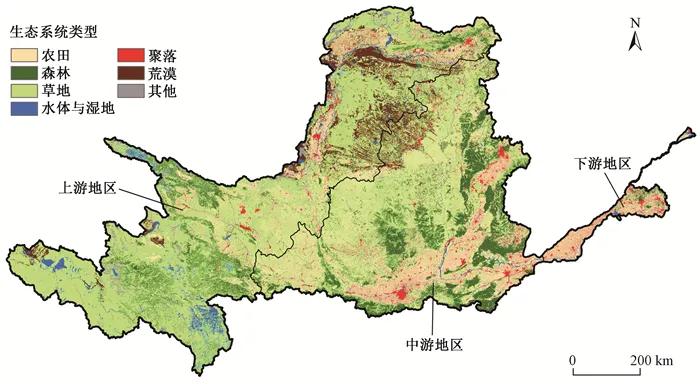 图 1 2018年黄河流域生态系统类型分布