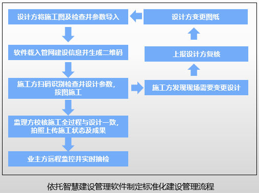 南京六合项目建设过程中,围绕智慧建设管理软件制定标准化建设管理流程,对村镇管网建设进度和建设质量进行全过程管控。