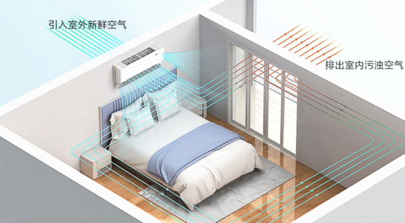 新风空调是新风机.html'>风机和传统空调集合的产品,不仅拥有换气功能,还规避了传统新风机安装环境受限、换热后热量损失等一系列问题。