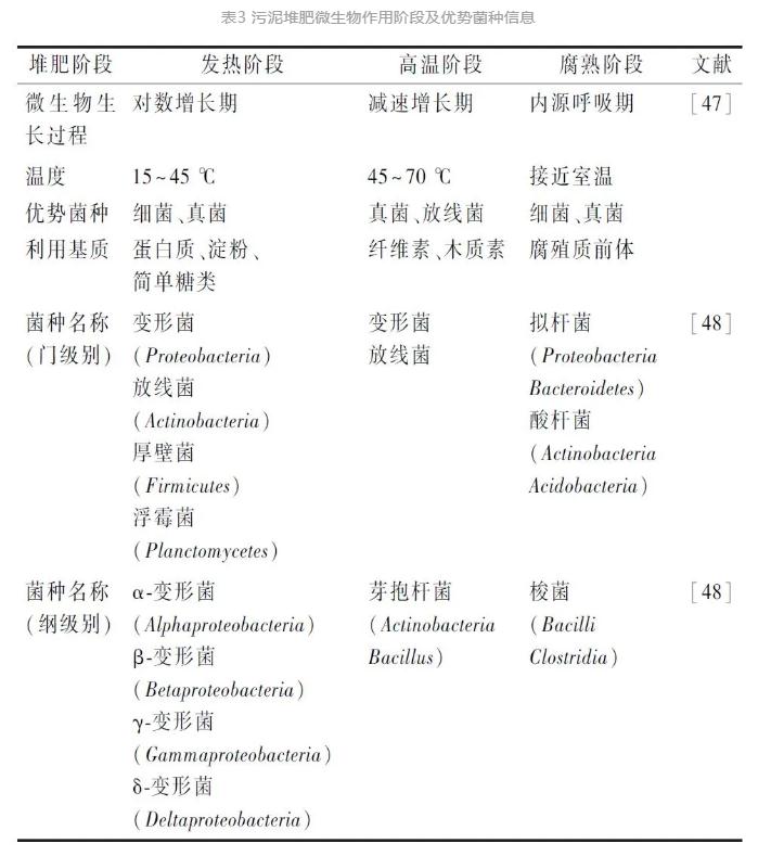 污泥堆肥是在微生物和相应酶的作用下,将有机质转化为稳定无毒复杂大分子的生物转化过程。有研究表明,相比于其他生物质废弃物(如动物粪便),污泥堆肥的微生物活动更加强烈。因此,对污泥堆肥过程的生物种群发展分析有利于更清晰了解污泥堆肥机理。生物调理剂的优化研发也在堆肥工艺优化中占据重要位置。
