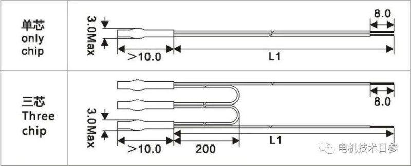 用于电机绕组的PTC,其主要的作用在于绕组温度的过热保护,所以PTC均为串联方式。当有一相的温度出现升高时,总电阻也将发生阶跃性增高,触发过高温保护。相对于单只工作,串联方式不会影响感应效果,相反会略微严苛一些。