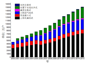 图1 2000~2015年中国农村六种无害化卫生厕所年安装量