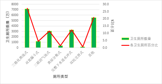 图2 2015年中国农村六种无害化卫生厕所及其他卫生厕所安装量