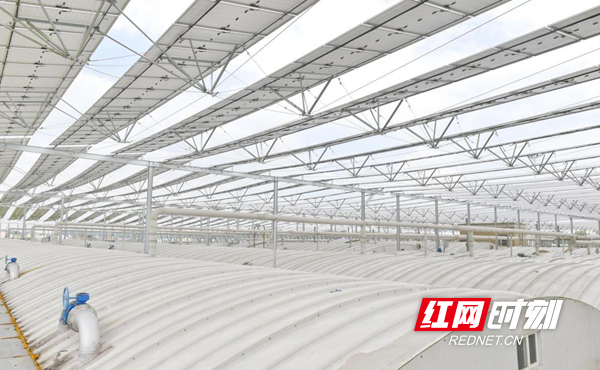 再生水厂具有占地面积大、空间开阔的特点,用电需求量较大,在其上方建设光伏发电项目有着得天独厚的优势。2020年10月,同属金阳投资集团的湖南浏阳经开区水务股份有限公司联合浏阳鑫能配售电有限公司共同开发建设光伏项目,利用北园再生水厂上空5万平方米面积,采用国内先进的柔性支架安装搭配钢结构,总投资约3700万元,总发电量约15000万度,项目全生命周期为25年。
